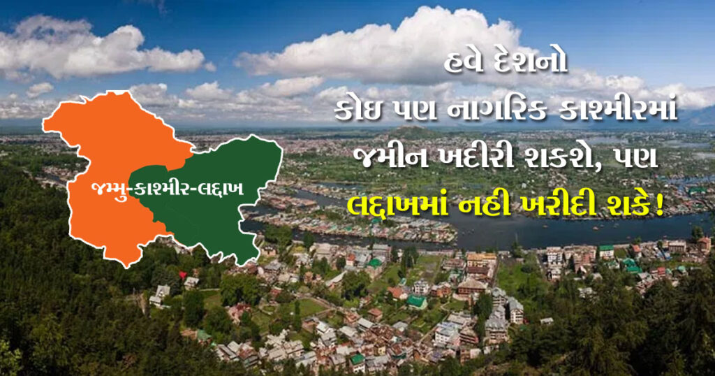 જમ્મુ-કાશ્મીર (Jammu Kashmir) માંથી ૩૭૦ ની ઘારા નાબૂદ થયા પછી અહીં ઘણા પરિવર્તન આવ્યા છે, અનેક કાયદાઓ અને નિયમો હવે અહીં બદલાઇ ગયા છે. ૩૭૦ ની ધારા અહીં લાગુ હતી ત્યારે અહીં દેશનો કોઇ નાગરિક કાશ્મીરમાં મિલકત કે જમીન ખરીદી શકતો ન હતો પણ હવે આ શક્ય બન્યું છે. હવે દેશનો કોઇ પણ નાગરિક કાશ્મીરમાં જમીન ખદીરી શકશે અને અહીં પોતાનું નિવાસ્થાન બનાવી શકશે. હંમેશાં માટે સ્થાઈ પણ થઈ શકશે. પણ મહત્વની વાત એ છે કે પહેલા લદ્દાખ જમ્મુ કાશ્મીરનો એક ભાગ હતું હવે તે એક અલગ રાજ્ય છે. માટે ઉલ્લેખનીય વાત એ છે ક ૩૭૦ની ધારા હટાવ્યા પછી કેન્દ્ર સરકાર દ્વાર જમ્મુ-કાશ્મીરમાં દેશના કોઇ પણ નાગરિકને જમીન ખરીદવાની પરવાગી આપી દીધી છે પણ લદ્દાખ માટે આ પરવાનગી અપાઈ નથી. આવું કેમ? તો તેના ધણાં કારણ છે પણ પહેલા કેન્દ્ર સરકારના નોટિફિકેશની વાત કરી લઈએ.