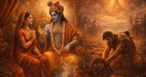 આપણે જે કંઈ પણ કરીએ છીએ—પછી તે સારું હોય કે ખરાબ—તેનું ફળ વહેલું કે મોડું આપણી પાસે પાછું આવે જ છે. આ વાત ભગવાન શ્રી કૃષ્ણ અને દેવી રુક્મિણી વચ્ચેના સંવાદ દ્વારા બહુ સચોટ રીતે સમજાવવામાં આવી છે.